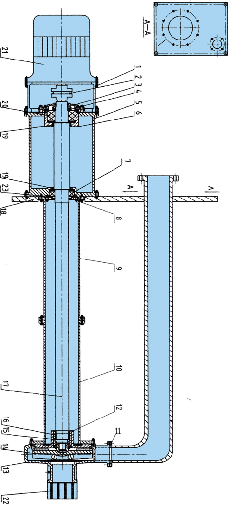 1、蜗壳 2、叶轮 3、后护板 4、密封圈 5、油封 6、轴承 7、油杯